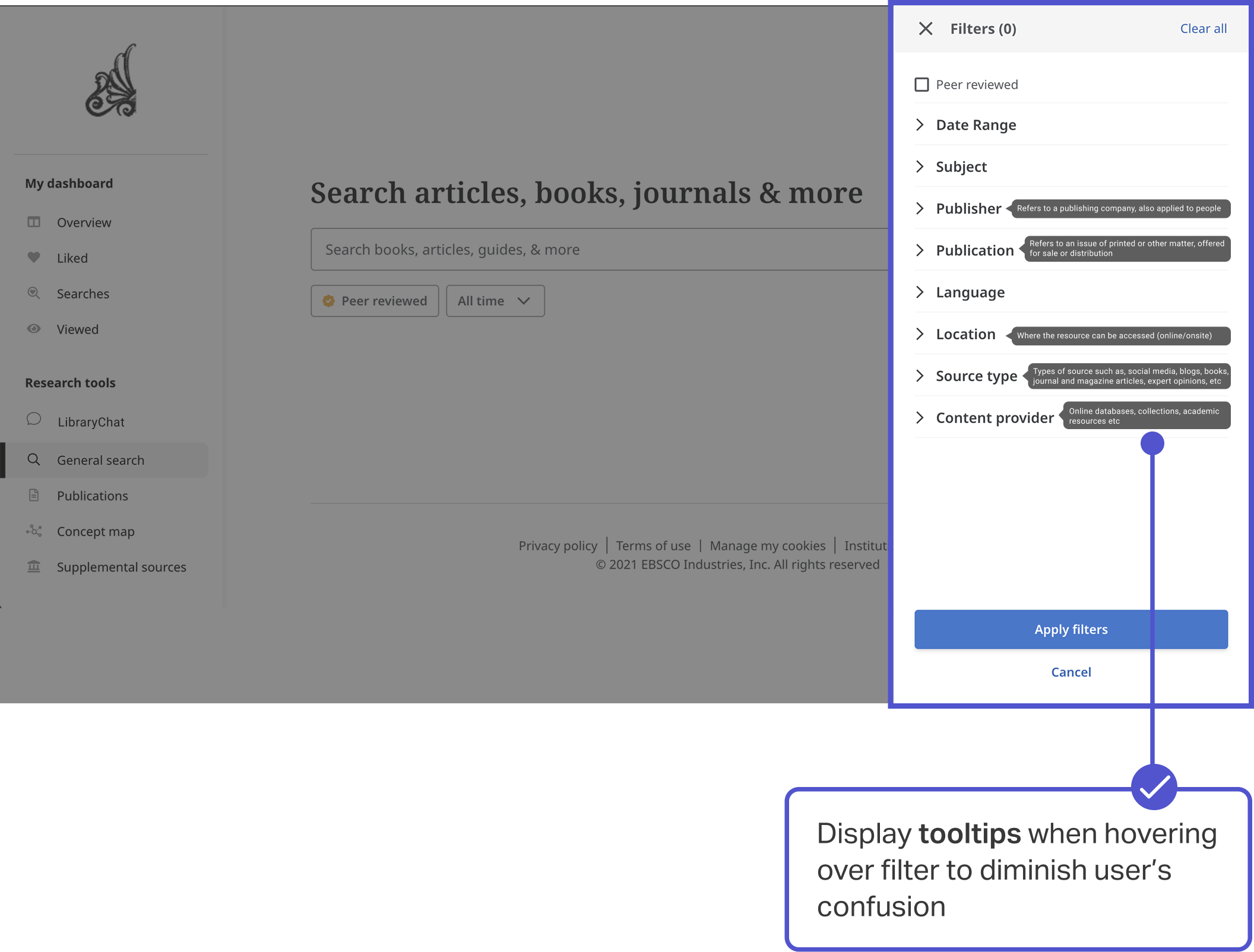 Recommendation: Add explanatory tooltips to filter categories.