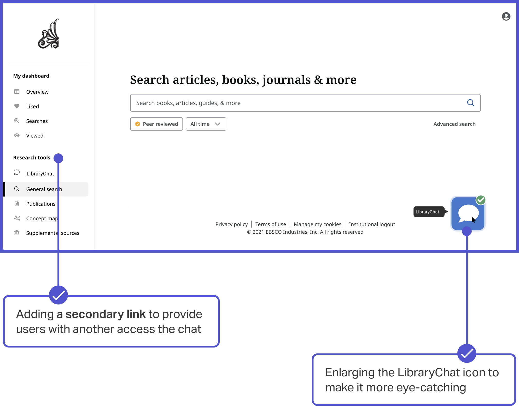 Although many students needed help during research, several failed to notice the Ask-a-Librarian chat. Its small size and placement made it easy to overlook, and some students searched for it in entirely different areas of the interface.