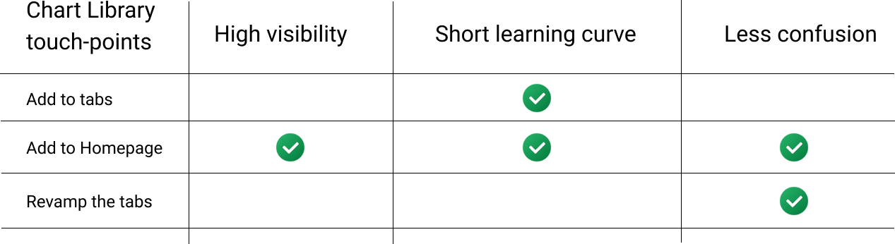 Opt for Insights explorer on the homepage as the touch-point for entering Chart Library.