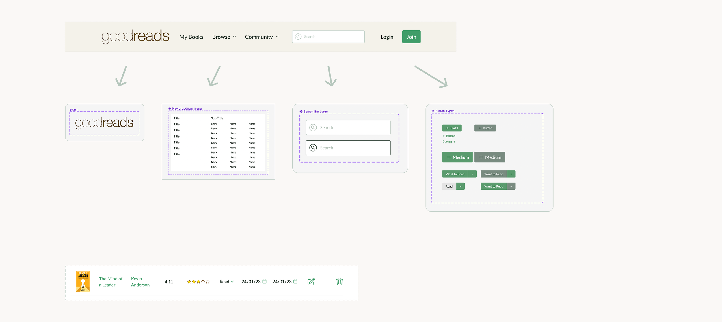 During my audit of the existing Goodreads website, I identified systemic inconsistencies that negatively impacted both user experience and team velocity: